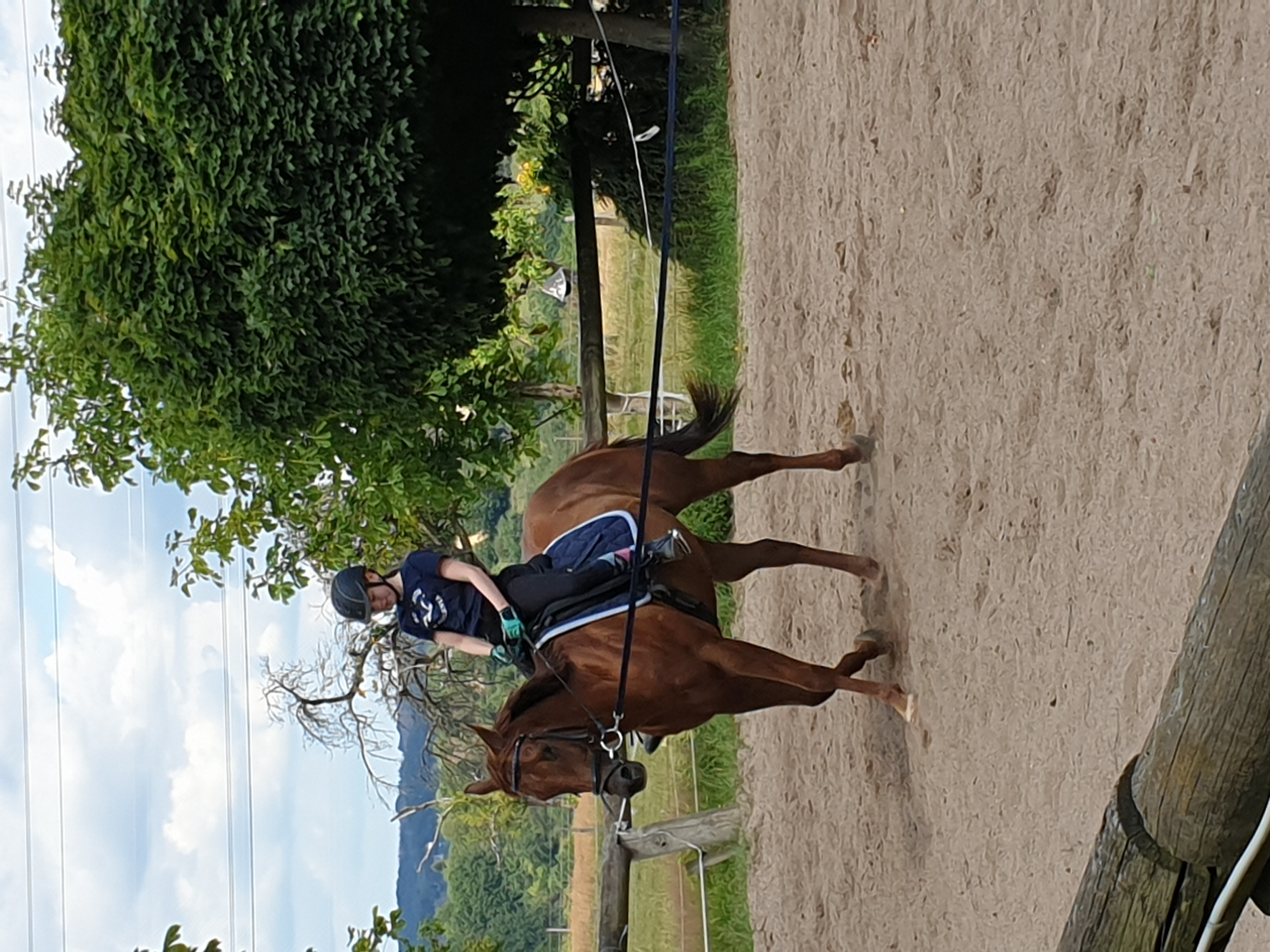 | Beispielsweise Red Fox lernt neben neuen Reitern auch eine neue Reitart kennen. Als ursprünglich Western gerittenes Pferd lernt er nun die klassische Reitweise hinzu. Neben wöchentlichen Reitstunden vertieft das Team anhand der Trainingshinweise selbstständig bis zur nächsten Reitstunde das frisch Erlernte. Einmal monatlich wird er zusätzlich von mir Korrektur geritten, damit das sehr junge Team sicher von Lektion zu Lektion wachsen kann. |